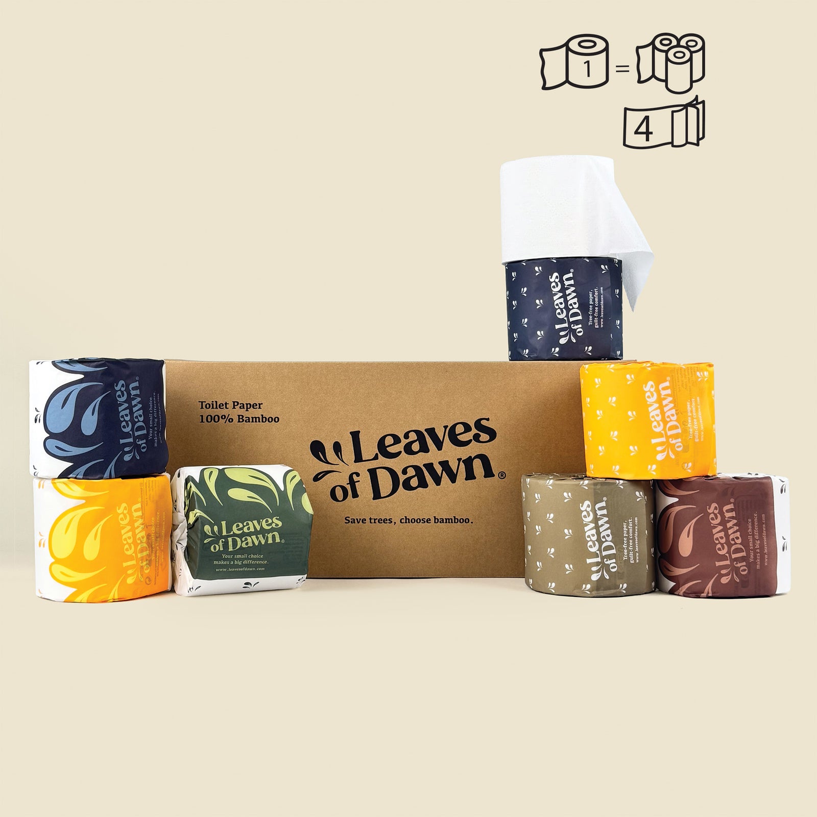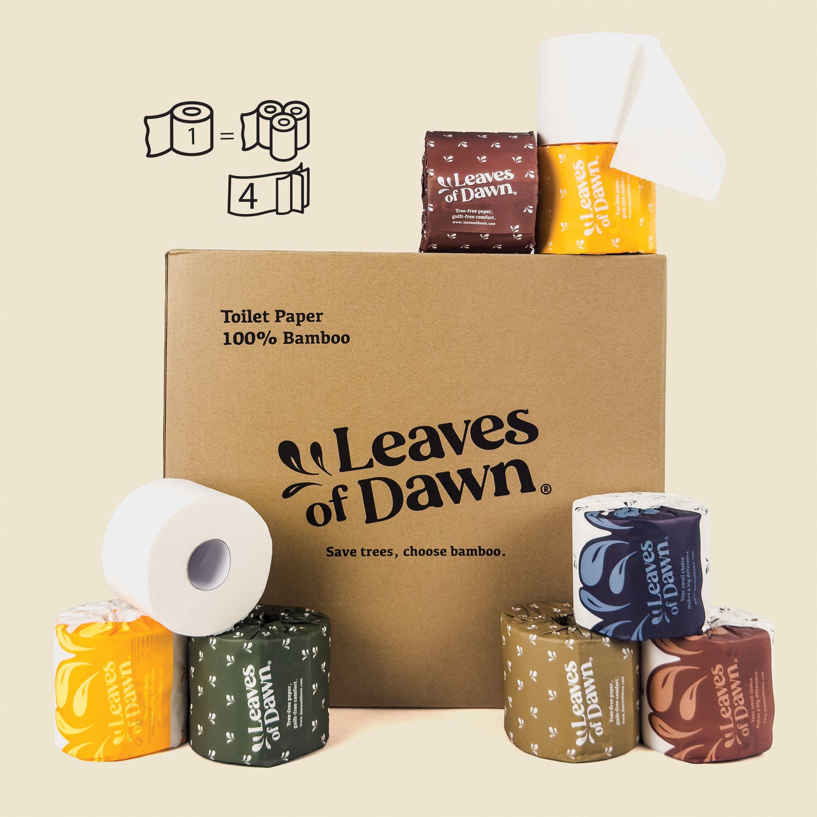 Discover the difference of our 4-ply bamboo toilet paper, meticulously crafted for an unparalleled experience. Leaves of Dawn's finest rolls offer a premium, soft feel that's both plush and incredibly strong. Made from 100% sustainably sourced bamboo, this toilet paper delivers premium comfort without compromising on durability or the environment. Each roll is thoughtfully designed to be extra-thick and long-lasting, providing double the value with fewer roll changes. It’s the perfect blend of indulgent softness, dependable strength, and eco-friendly responsibility.